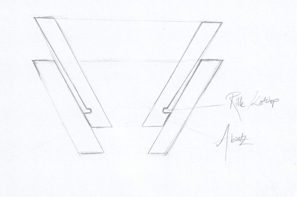 Mit einer Feile feilte ich mittig umlaufend an der inneren Zarge einen leicht anderen Winkel an, so dass am unteren Ende der Zarge einen Absatz entstand. Zusätzlich sägte ich umlaufend eine Rille ein. Durch den Absatz hat die innere Zarge eine kleinere Auflagefläche in der äußeren Zarge. Außerdem wird so gewährleistet, dass das Lot beim Löten maximal bis zur Rille über dem Absatz fließt.